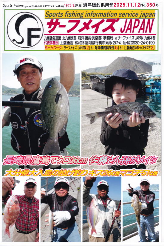 皆さん こんにちは 毎日の通勤 通学 お疲れさまです。さて釣りマナーアップ「来た時よりも奇麗な釣り場」を海洋磯釣俱楽部は50年間続けてまいりました。釣りの時間を裂き、参加者全員でクリンアップ出来た事、頑張れた事、凄いと想います。その事で得たメリット沢山ありました。(公財)日本釣振興会からゴミ袋の寄付に軍手や子供達が喜ぶステッカーなど、また海洋磯釣俱楽部の大会にはタカミヤポイントさんからの賞品から、マリバー号が来て、ゴミの回収、良くしてくれました。最近は行政のボランティアの釣り場美化にも協力していますが、もう少し参加者が欲しい事、良くあります。海辺のゴミが多すぎ。漁港もですが、まだまだ釣り人のゴミマナー出来ていません。皆さんご協力お願いします。その上で、無料配布している「サーフメイズJAPAN2025.11月12月 No.360号」事務局に在庫あります。合わせて(公財)日本釣振興会のゴミ袋に軍手、ポスター、チラシ、ステッカー残り少しありますので、取りに来てくれる方、電話し遊びに来て下さい。楽しい釣りの話し、しませんか。ランチ定食はシロキスのカラアゲかクロの甘間にムニエル、洋子ちゃんの創作料理です。上瀧勇哲 |